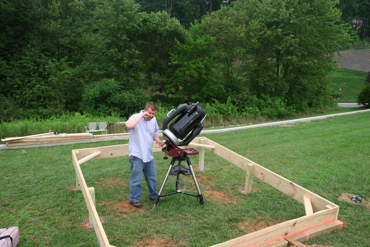 My wife really didn’t like the Orion’s belt idea, she thought it was stupid to plan your backyard landscaping around a constellation. She thought the design compromised utility in favor of quirkiness. I personally struggled with the decision and changed my mind back and forth 5 or 6 times. Ultimately I felt an overwhelming desire, a gut feeling, a need that the observatory and observation deck stayed true to the Orion’s Belt plan. My wife said I was crazy, but reluctantly agreed. When I told Travis our landscaper about my plan, I really think he thought I was crazy but I could also tell he thought the idea was kinda cool. Before construction began I setup my scope at the exact location where the star Alnitak would be. I put in a lot of time to get this position just right and once I had it figured out it felt perfect.