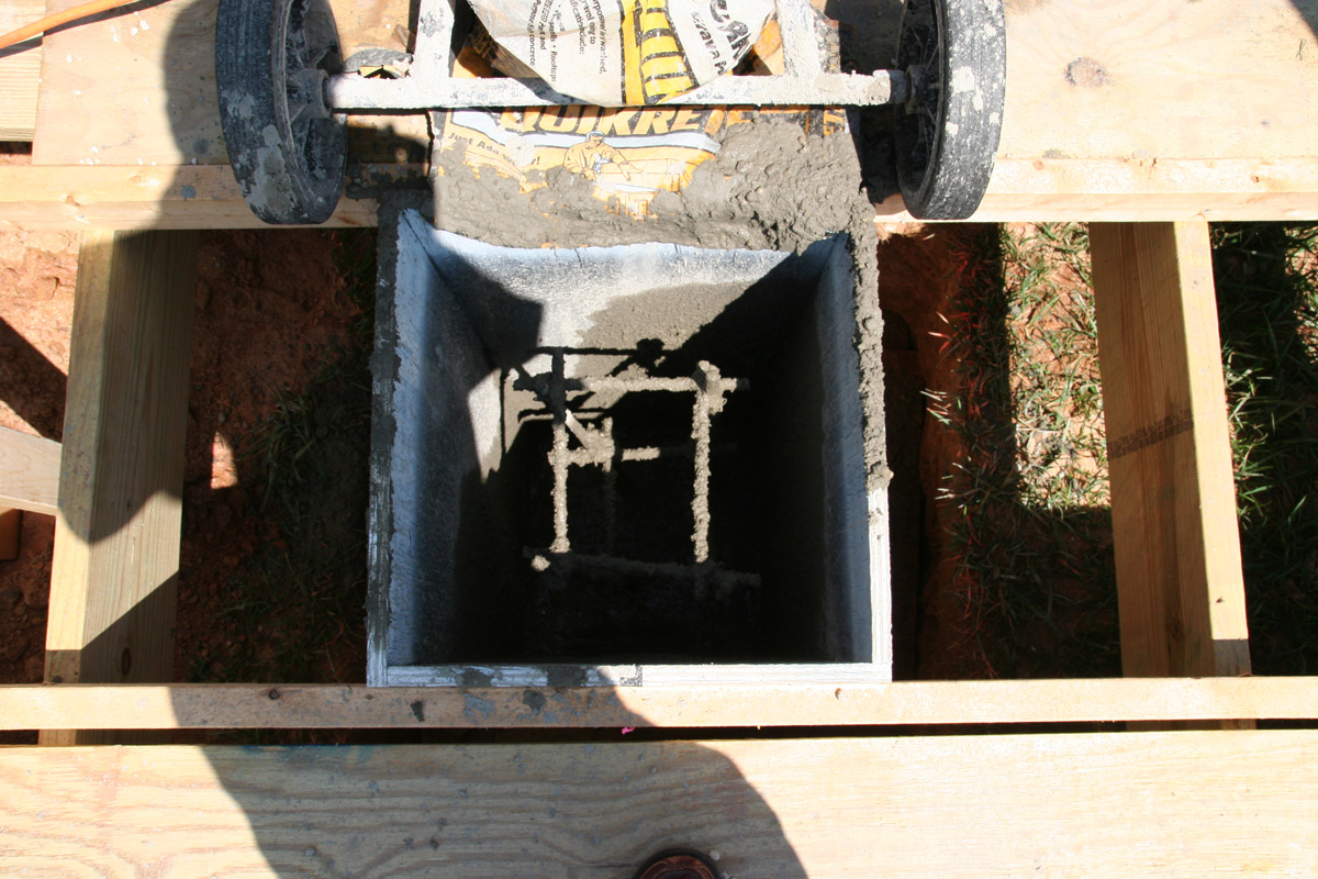 Another element of pier placement and development planning is the true north issue. Telescopes need to be mounted in a specific way so that they are pointed exactly true north. True north and magnetic north are different, so using a compass is unreliable. I wanted the structure of the observatory itself to be set to true north, meaning the east and west walls point exactly north and south. The building itself is a compass pointing at true north. The frame for the pier was set in the center of the structure and its walls are parallel with the buildings walls. To determine true north markings I used a variety of methods including: using a compass and offsetting for magnetic north (not recommended), using a sun dial at solar noon, using a telescope / the stars with drift alignment (and then marking the ground based on wedge location) and using a GPS. When all was said and done we got it right. For those of you who want to know the best way to find true north, I would recommend using a good hikers GPS (or iPhone compass) to figure it out.